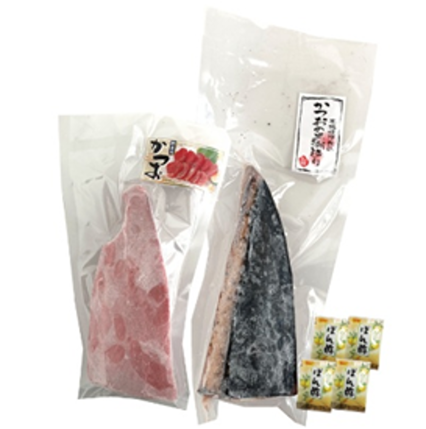 焼津の一本釣りかつおのたたきと刺身の詰め合わせです。