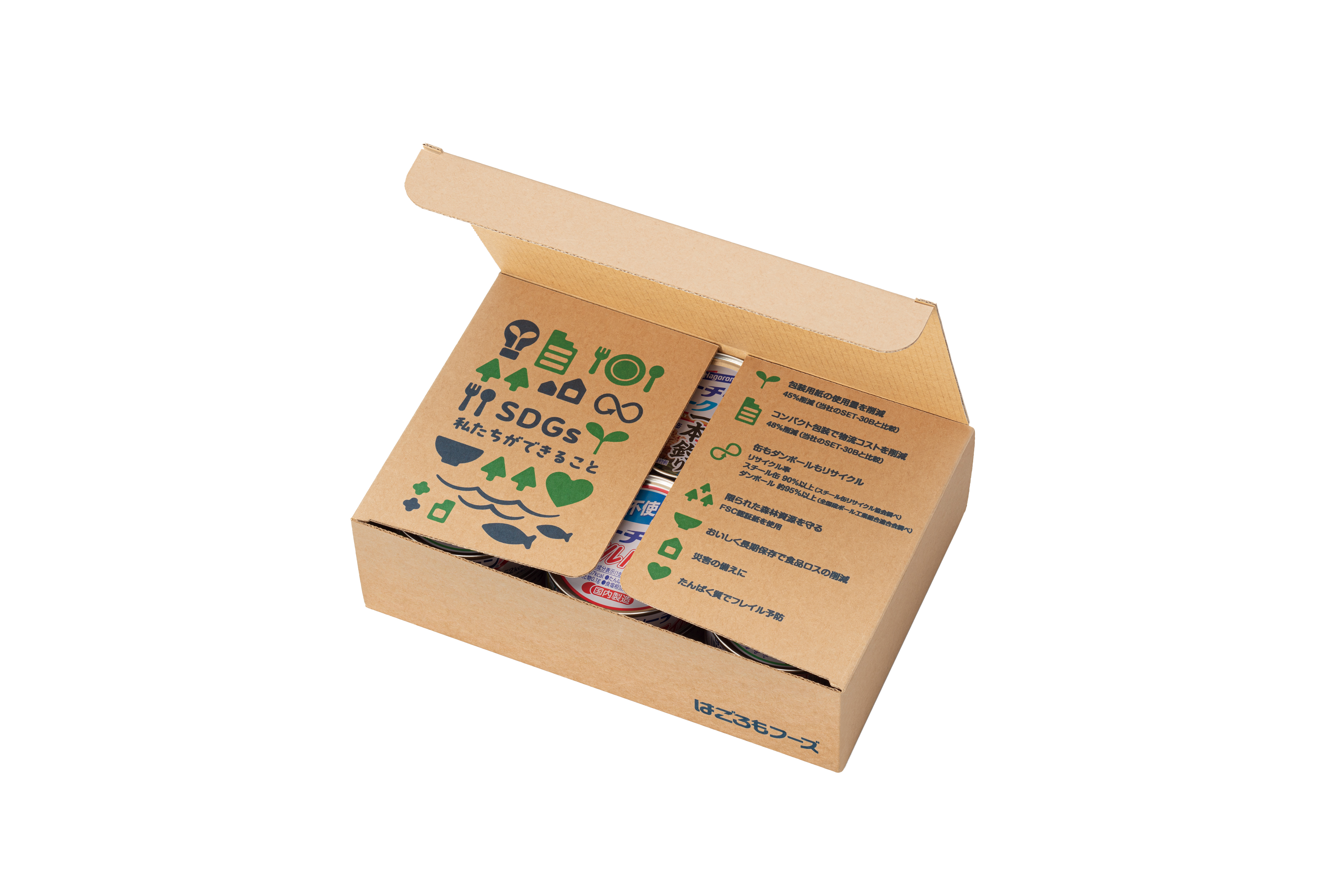 紙資源の使用量の削減を行い、環境に配慮したSDGsなシーチキンの詰合せギフトです。